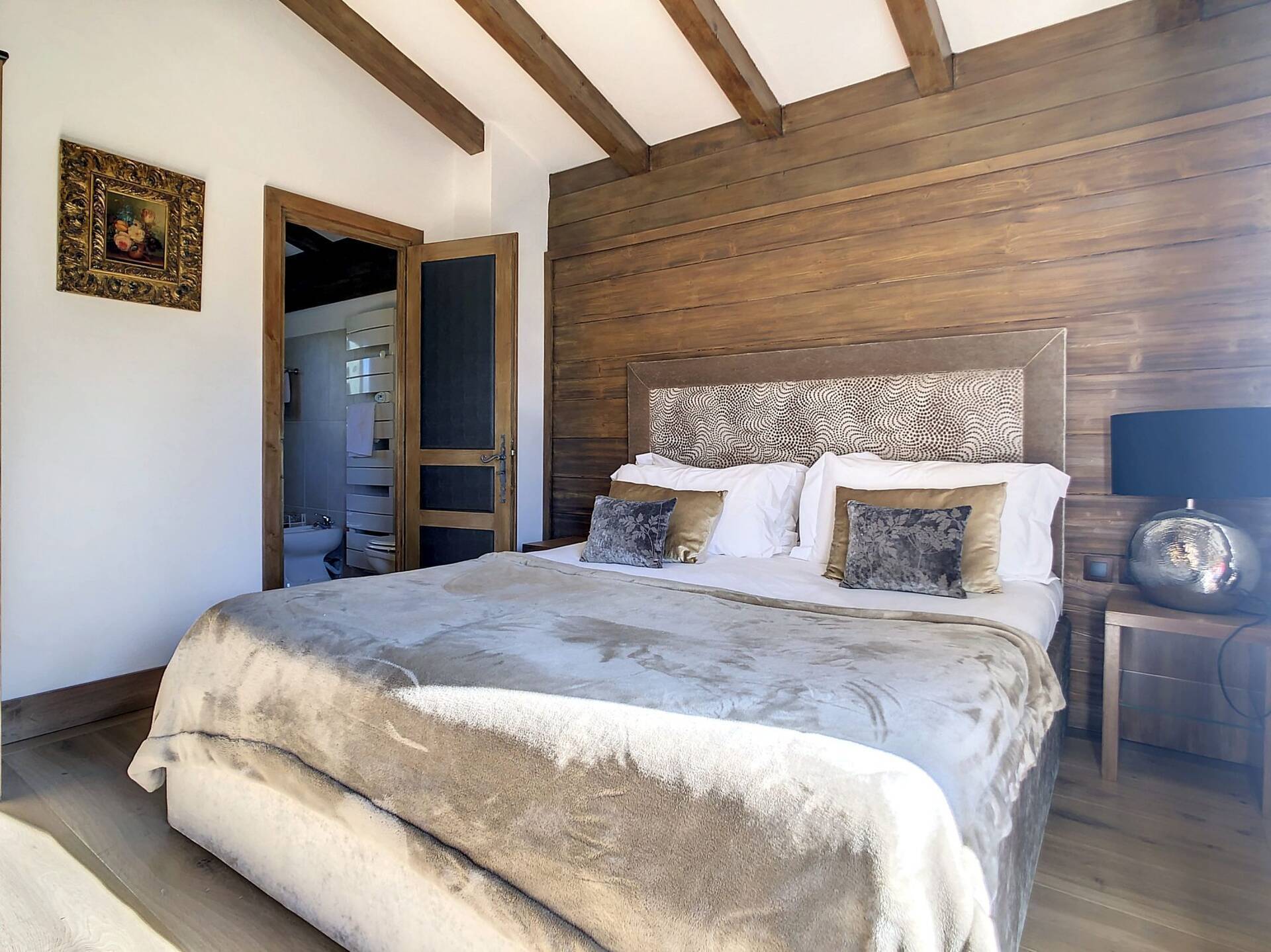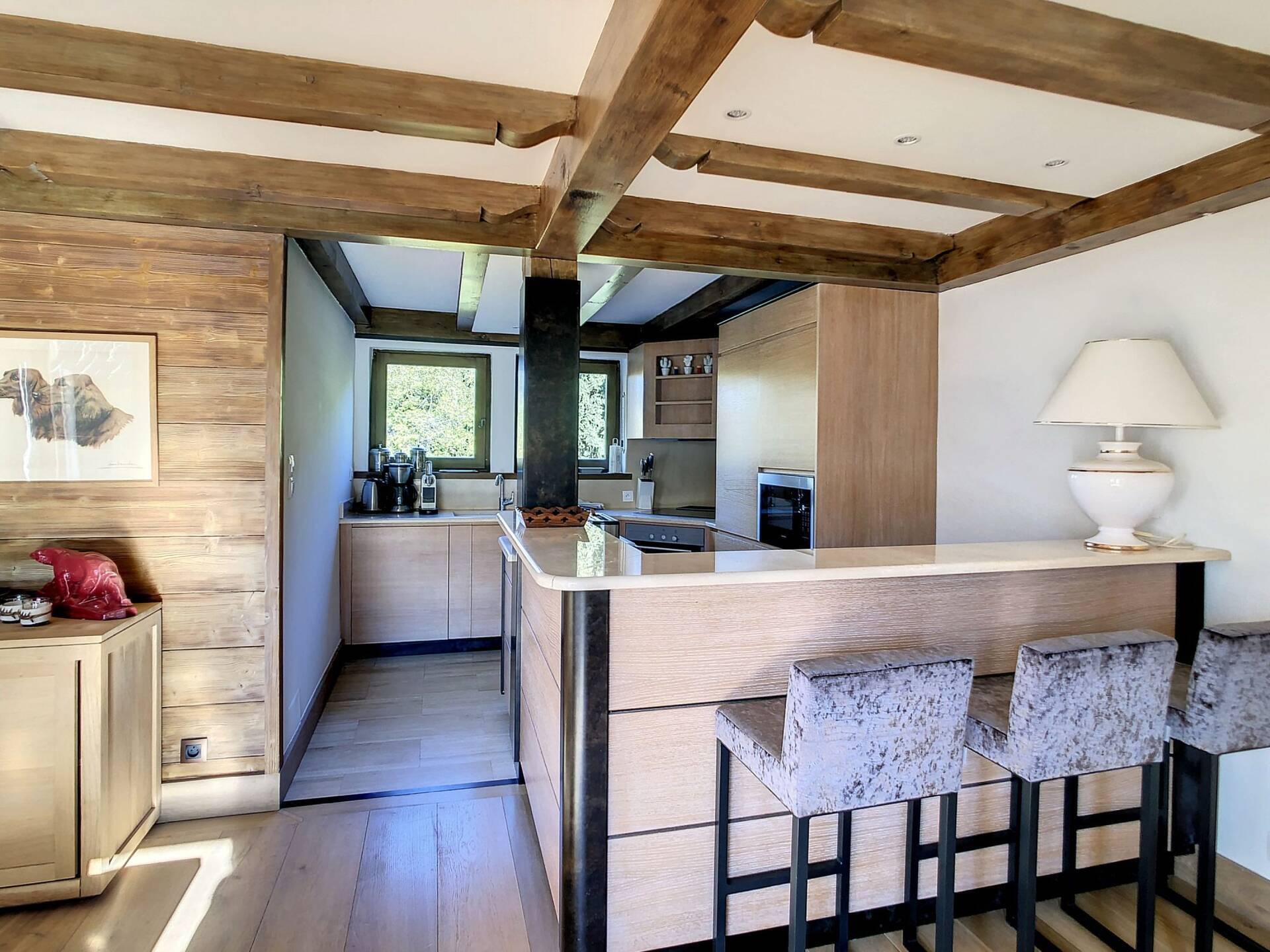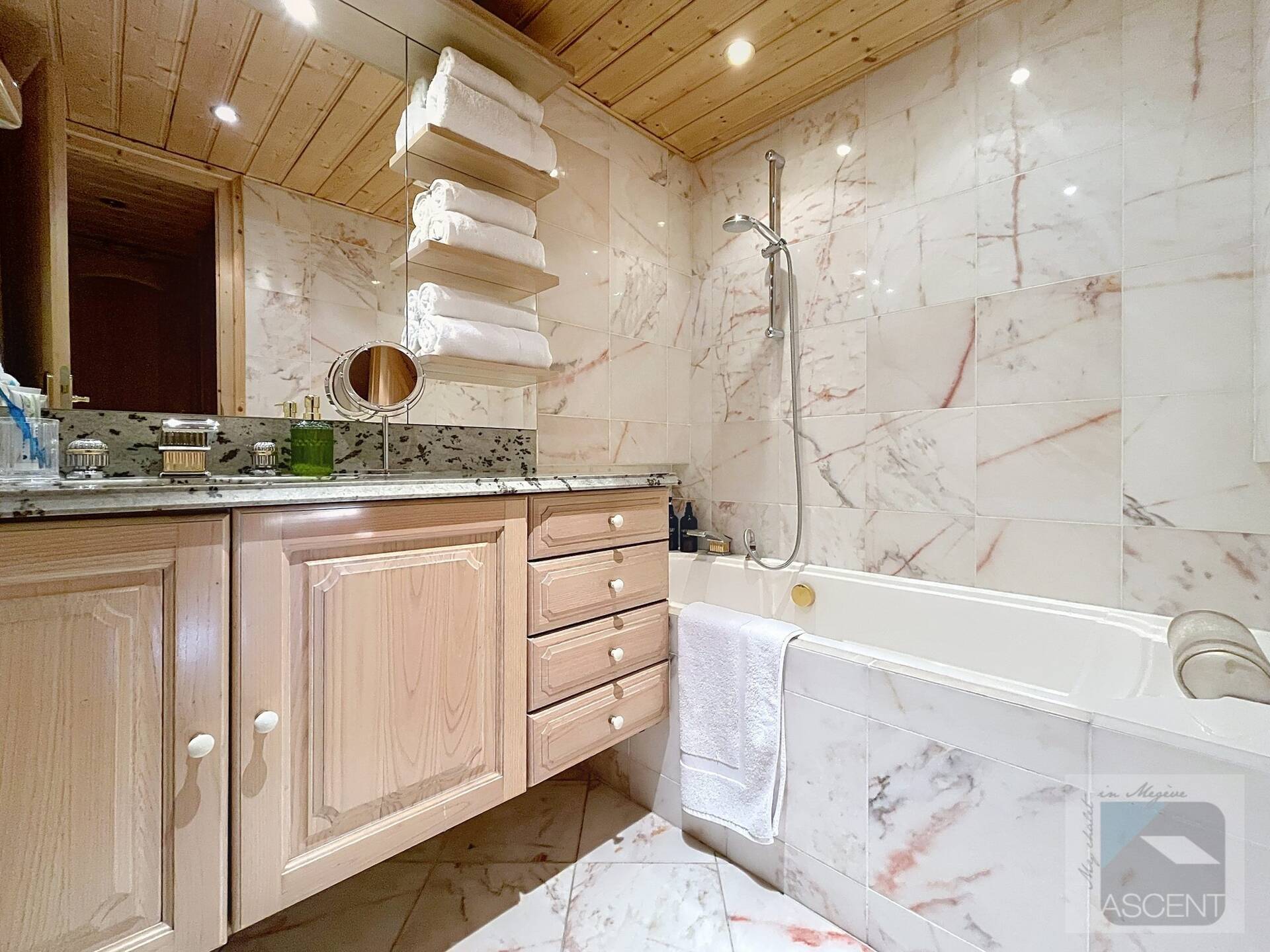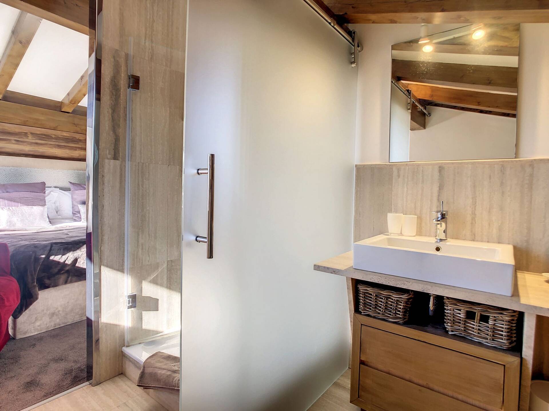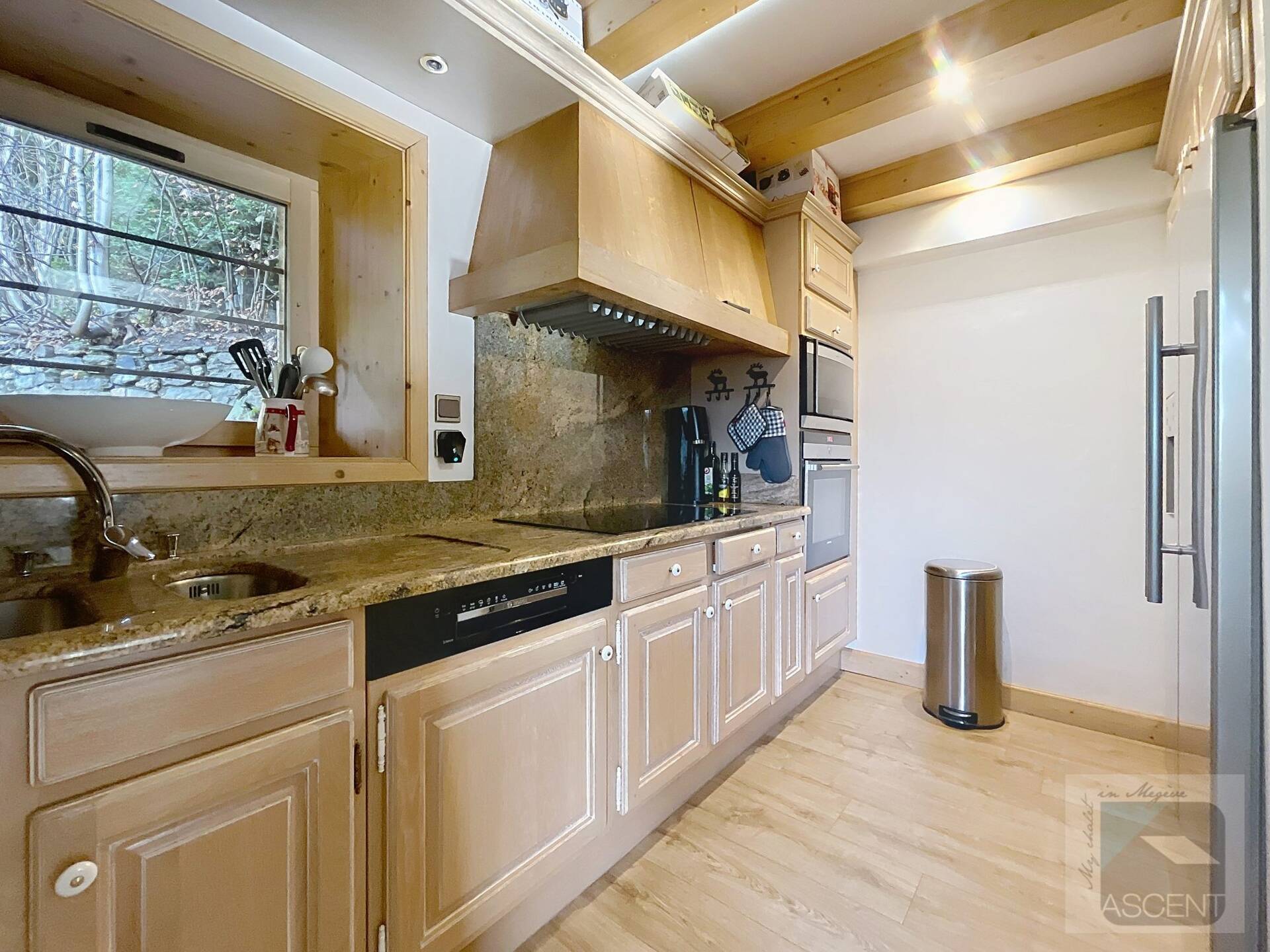 L'appartement en triplex avec double entrée dont une indépendante, donne l'impression de vivre dans un chalet. Il est distribue? comme suit : Au rez-de-jardin: 1 chambre double (lit 160 x200 cm) avec acce?s au jardin ; 1 chambre avec un double (lit 140 x200 cm) avec acce?s au jardin et 1 chambre avec lit superpose? ; 1 salle-de-bain luxueuse avec 1 grande baignoire et 1 douche a? l'italienne se?pare?e ; toilettes se?pare?es. Etage intermédiaire : 1 cuisine ame?ricaine équipée ; 1 salle-a?-manger (30m2), chemine?e et acce?s aux balcons (vue donnant sur les sapins et les montagnes) ; 1 chambre double (lit 160 x200) avec dressing, salle-de-bain et toilettes se?pare?es. Etage supe?rieur : 1 cuisine ame?ricaine ouverte sur un grand salon (40m2) avec chemine?e et acce?s aux balcons, (vue sur les sapins et les montagnes) ; 1 chambre double (lit de 160 x200) ; 1 salle-de-bain avec jacuzzi ; toilettes se?pare?es ; Grand ski room à l'entrée. A l'exte?rieur : 1 jardin privatif (500m2) joliment arbore? avec 1 un espace 'fire pit' (pour faire des feux de camp le soir autour d'un ape?ritif) ; 1 sauna inde?pendant et 1 garage double garage (accès direct à l'appartement).
