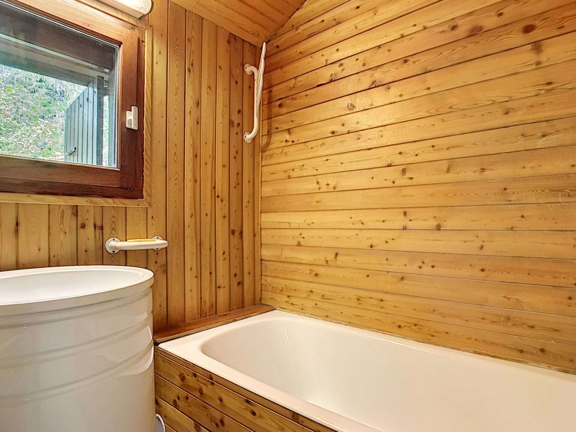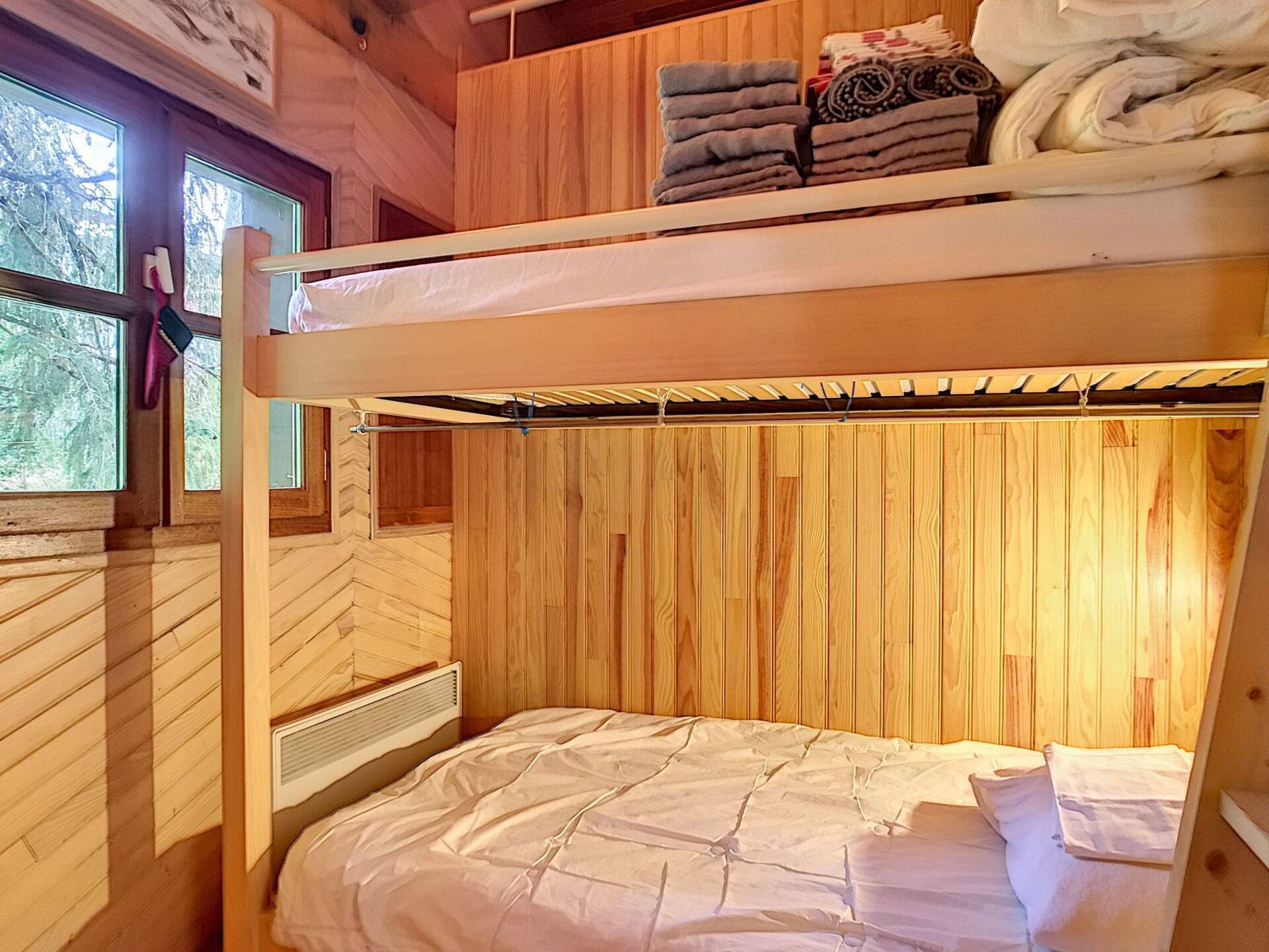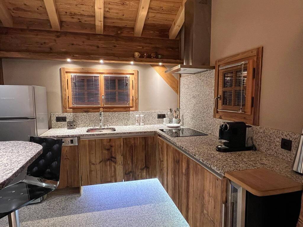 Cette jolie maisonnette avec remise se trouve sur un petit terrain privatif de 186 m2 à quelques pas du télécabine du Chamois et du centre du village.
